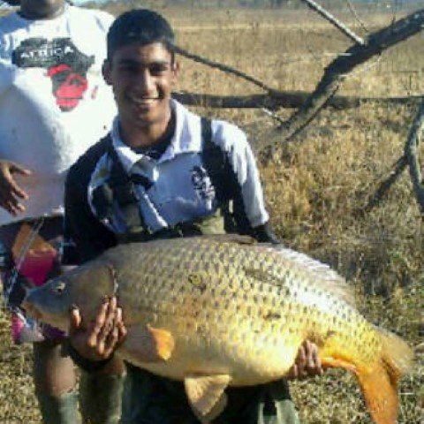Ash Pillay with his monstrous 19.5kg Carp caught in the Umgeni River on 21/06/2014