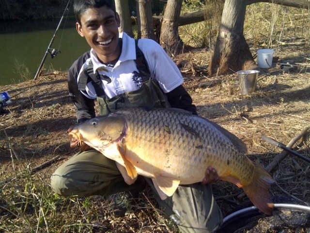 Ash Pillay with his 19.5kg Carp caught in the Umgeni River on 21/06/2014
