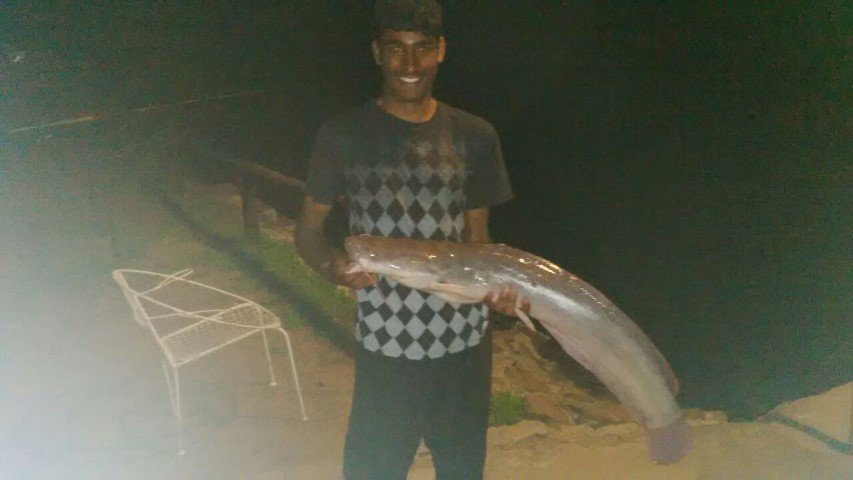 Ash Pillay with a nice barble caught in the Vaalriver at River Lodge, Bloemhof