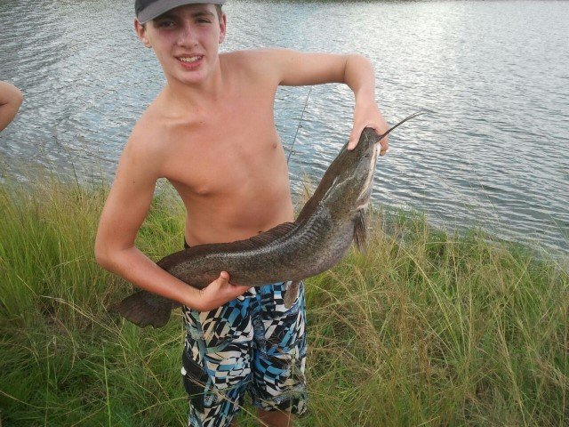 Darren van Zyl with a nice Barble caught at Pylon Bay, Midmar